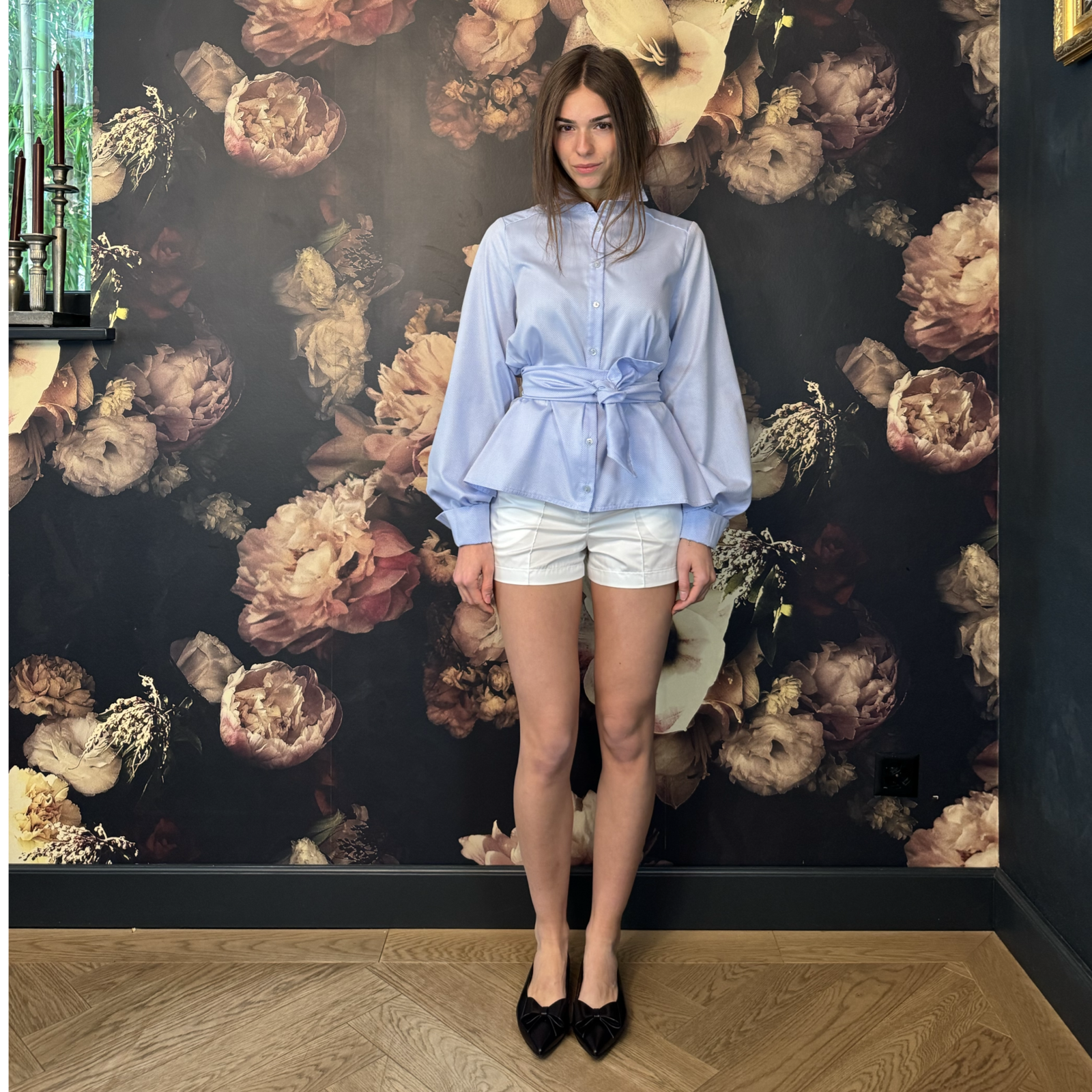 CARO Oxfort B.Blue cotton Blouse with tie